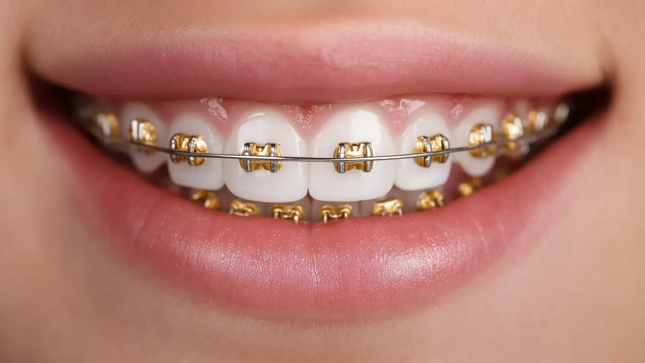 Gold braces are orthodontic braces made from high-quality stainless steel with a gold coating. They function like traditional metal braces while offering a distinctive appearance and added corrosion resistance.